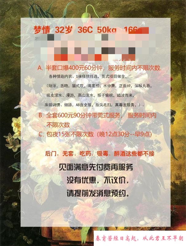 【特别注意】:凡是需要支付定金或路费的都是诈骗,再次提醒各位,一定不要先给钱!建议服务完后再给钱,或者谈好先给部分完事给剩下的。遇到还没服务就先给钱的,要千万小心被跑路和服务体验差,无数会员反馈谈好过夜却中途找借口跑路的情况!见面感觉不对劲就宁愿不玩,不然花了钱玩不开心得不偿失!